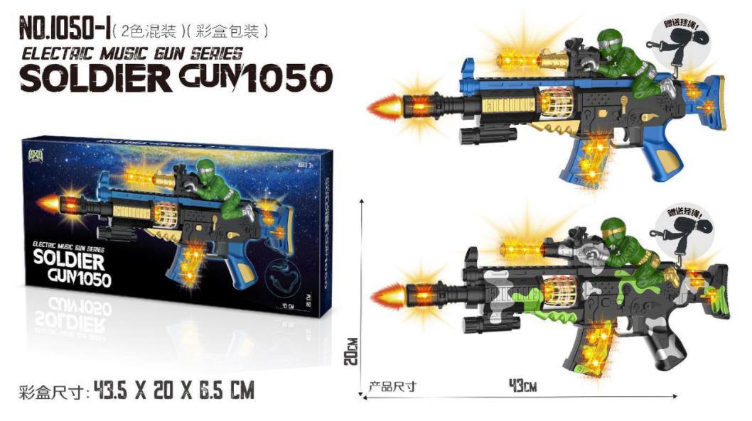 Автомат сверкает разноцветными огоньками при каждом нажатии на курок. Это создает яркую и визуально привлекательную атмосферу, приглашая детей в увлекательный мир воображаемых приключений.