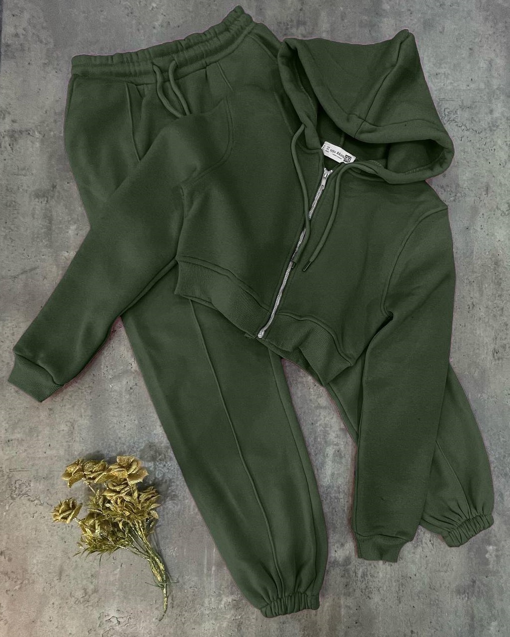 Актуальный Костюм : кофта + джоггеры современный свободный крой хаки