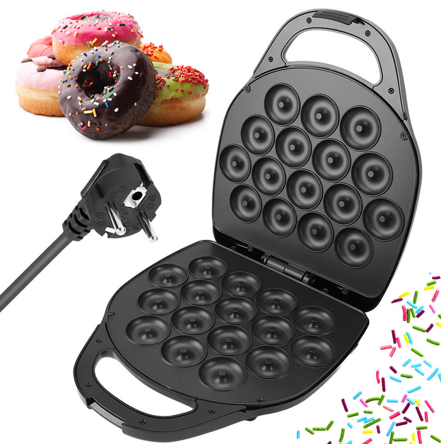 Аппарат для пончиков позволяет быстро и легко приготовить до 16 порций за один цикл, делая процесс выпечки простым и удобным. Компактный и легкий, он отлично подойдет для домашнего использования. Антипригарное покрытие предотвращает пригорание и значительно упрощает очистку после приготовления.
