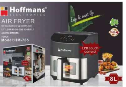 Аэрофритюрница Hoffmans 8L 2000W с сенсорным LCD экраном HM-785 – это ваш надежный помощник на кухне, сочетающий в себе передовые технологии и стильный внешний вид. Благодаря объему 8 литров и высокой мощности 2000 Вт, вы сможете быстро и равномерно готовить любимые блюда для всей семьи или большой компании. Интуитивно понятный сенсорный LCD экран делает управление простым и удобным, позволяя легко выбирать оптимальные режимы приготовления.