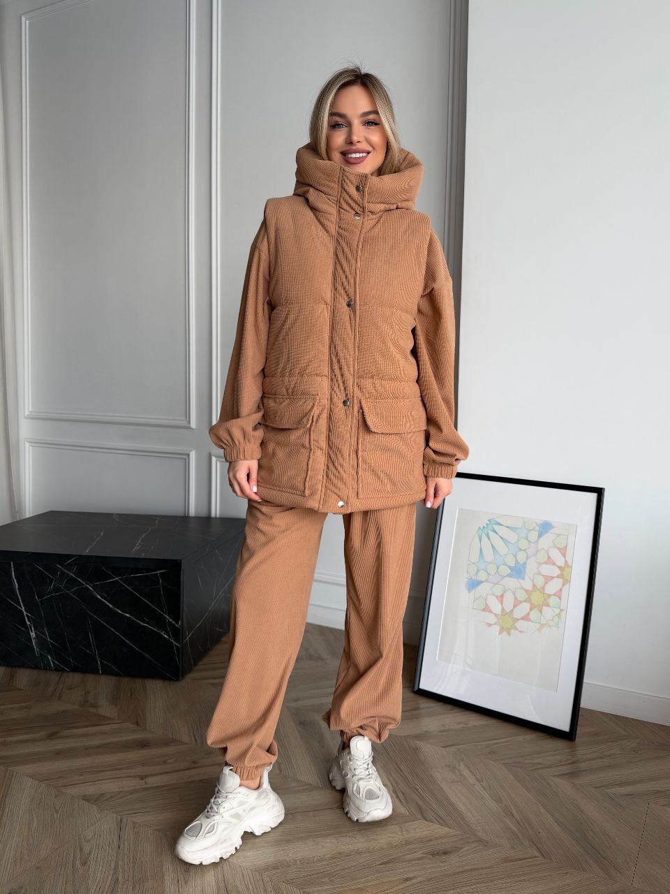 ВЕЛЬВЕТОВЫЙ КОСТЮМ ТРОЙКА С ТЕПЛЕНЬКОЙ ЖИЛЕТКОЙ карамель
