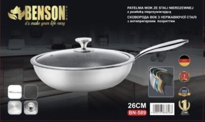 Сковорода BN-589 глубокая WOK 26 см из нержавеющей стали профессиональная Антипригарное покрытие (не царапается)