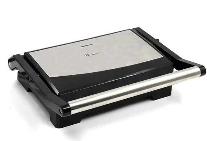Корпус данного гриля изготовлен из нержавеющей стали, а тепло изолированная ручка не требует использования прихватки для безопасной эксплуатации.