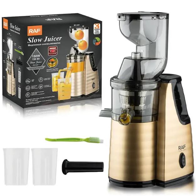 Професійна електрична повна соковижималка RAF із двошвидкісним холодним пресом із низьким рівнем шуму, без бісфенолу А, з харчовим матеріалом тритан/нержавіюча сталь – золото – 150 Вт – – (R.2838)