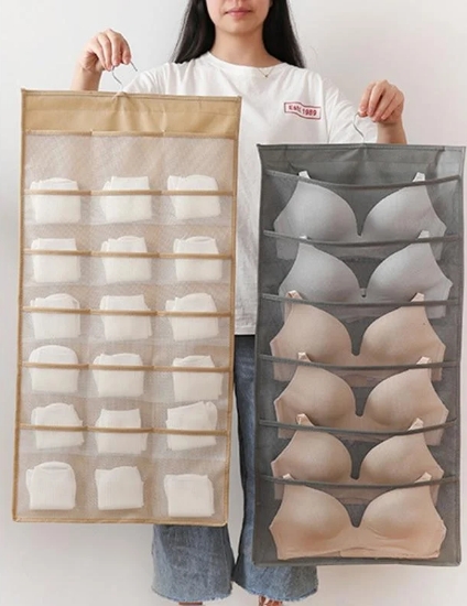 Двухсторонний органайзер для хранения нижнего белья в шкафу на крючке — бежевый и серый цвет