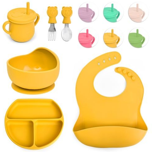 Вся посуда изготовлена из безопасного силикона, который не содержит вредных веществ и не раздражает нежную кожу ребенка. Его легко чистить, и он подходит для использования в посудомоечной машине.