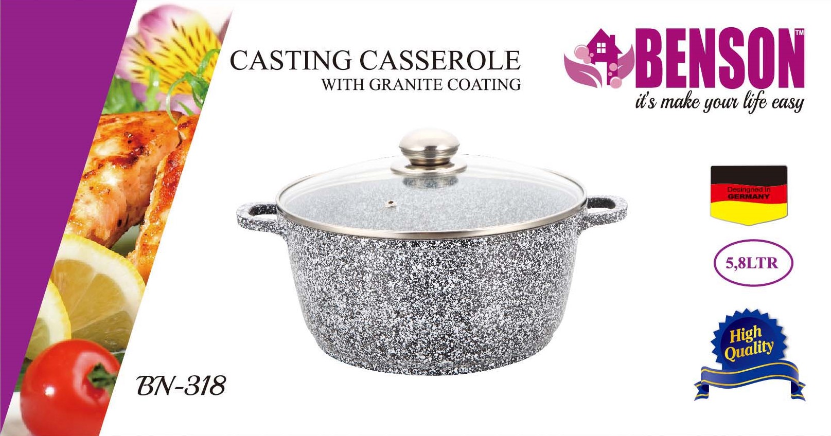 Кастрюля с крышкой Benson Гранитное покрытие 5,8 л BN-318