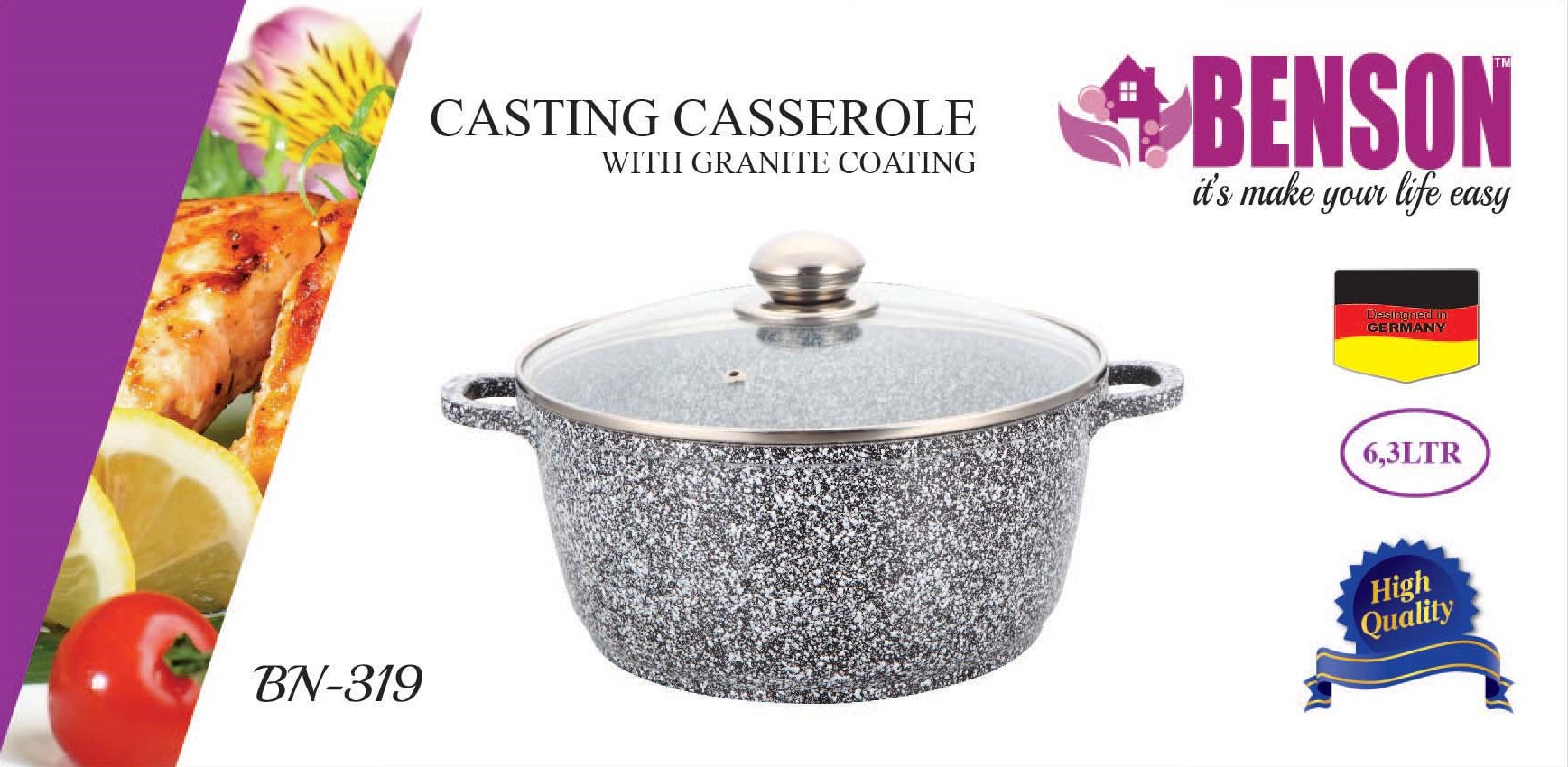 Кастрюля с крышкой Benson Гранитное покрытие 6,3 л BN-319