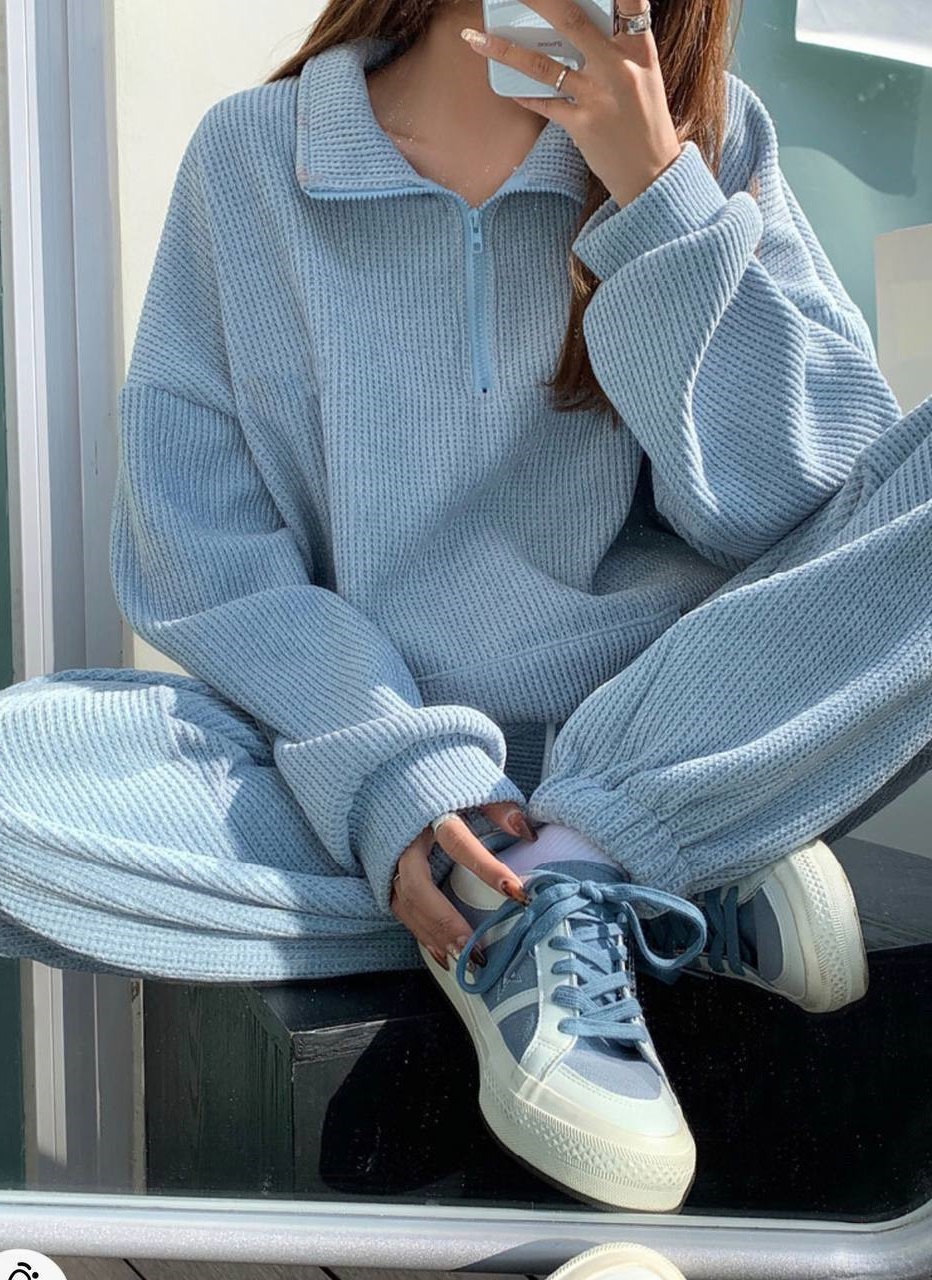 Будьте первым, кто оставил отзыв на “Костюмчик (брюки+ кофта свободного кроя воротник стойка на молнии) голубой”