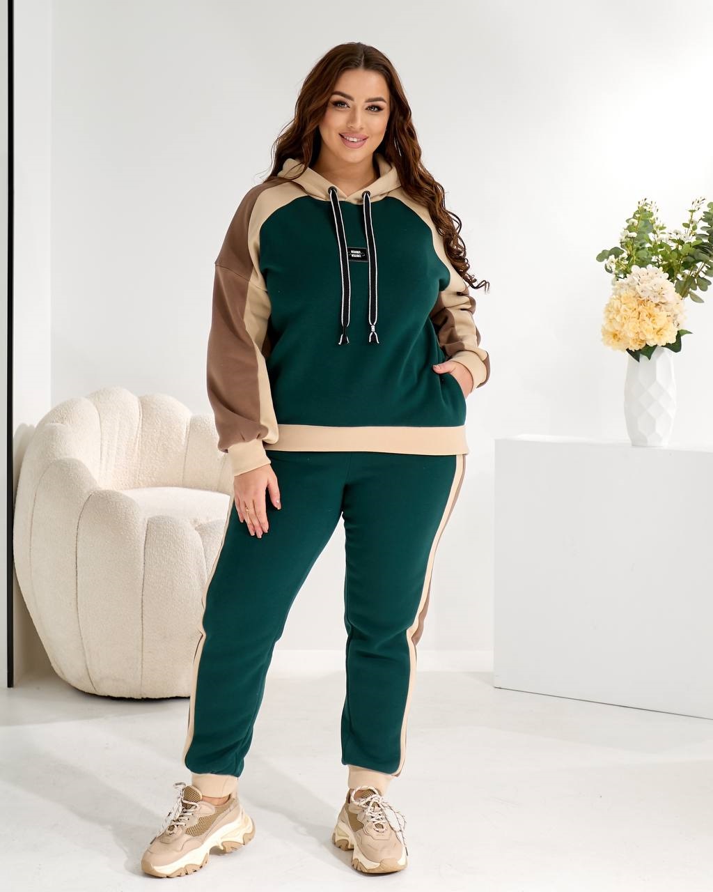 Костюм выполнен из трехнитки отличный в носке, приятен к телу.