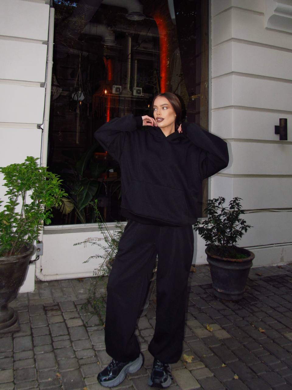 Объемный худи с турецкой рыбаной, ДВОЙНЫЙ капюшон, джогеры оверсайз.