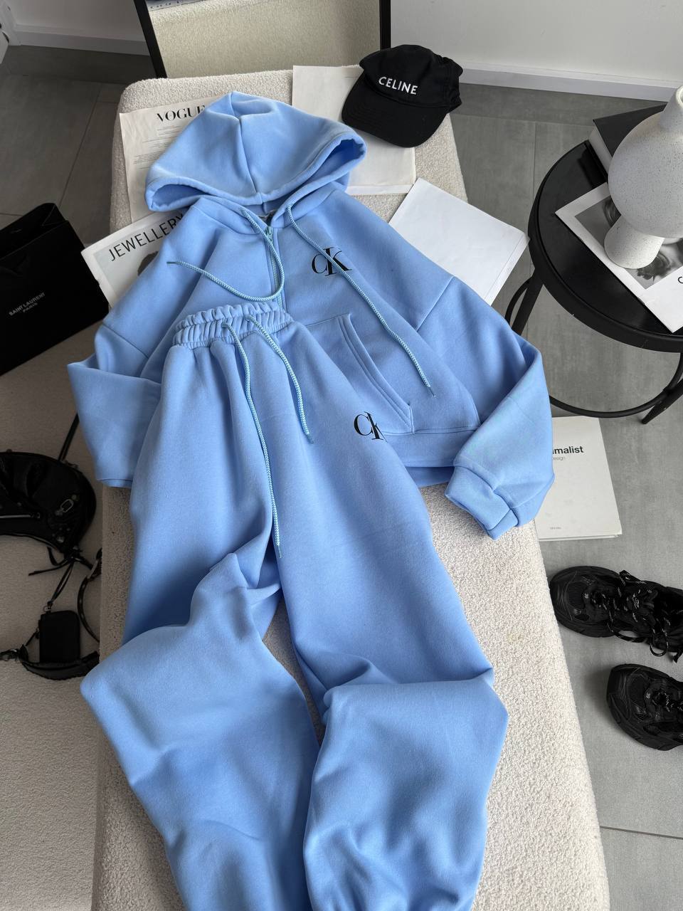 Костюм свободного кроя: кофта+джоггеры высокая посадка голубой