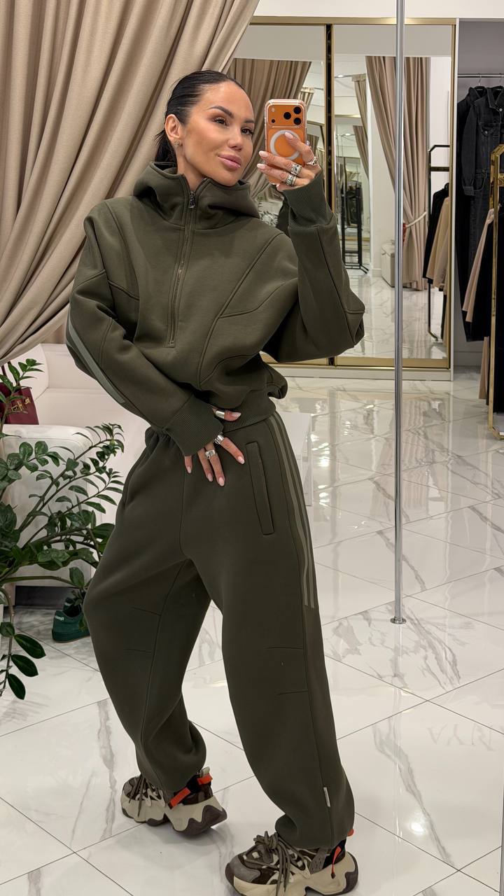 Девушки, костюмчик турецкая трехнить на флисе, очень дорого смотрится. Худи на молнии, с капюшоном. Брюки и худи из одного бога с декорированными лампасами в цвет.