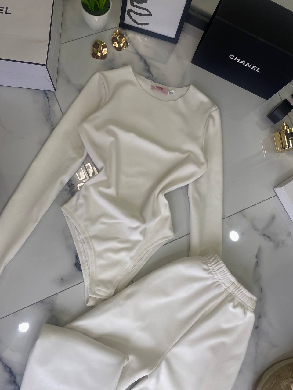 Костюм термо (боди с вырезами для пальчиков+джогеры оверсайз) молочный