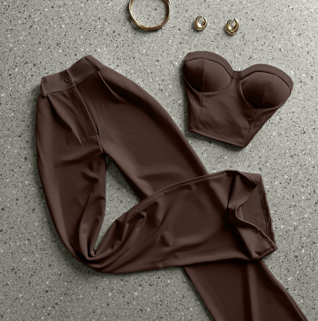 Костюм: топ/корсет с чашками + брюки палаццо