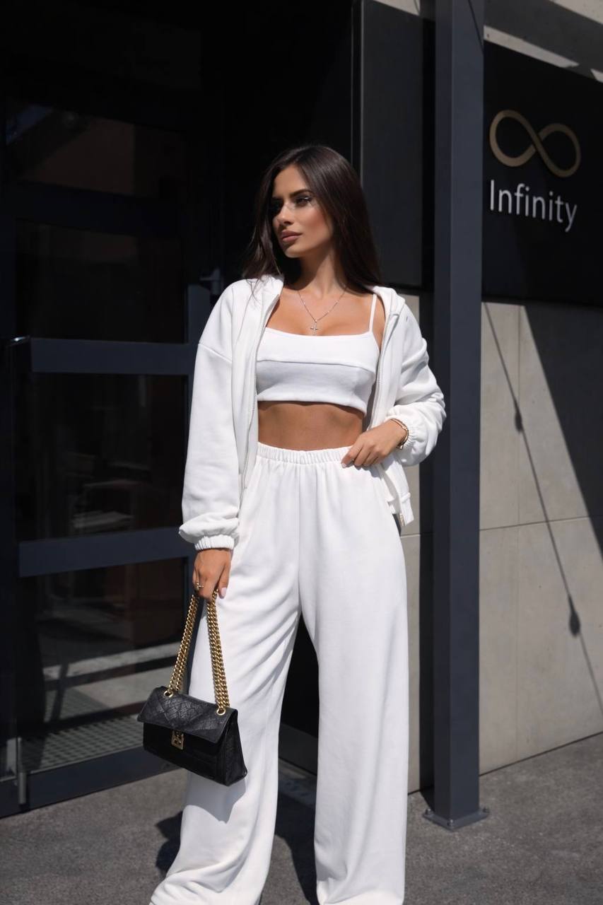 Костюм тройка велюровый: кофта+топ+брюки белый