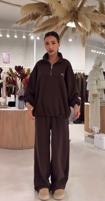 Костюм (худи с воротником на молнии+свободного кроя брюки) шоколад