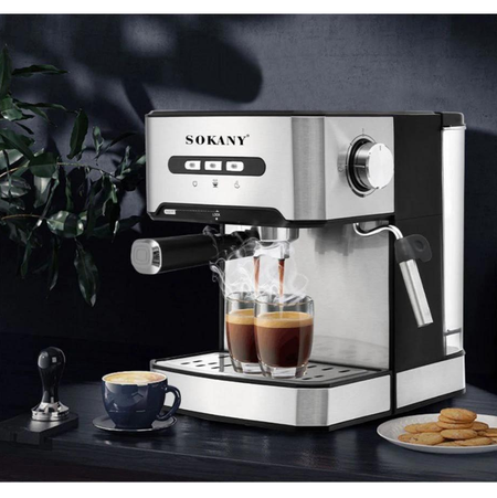 Настольная профессиональная автоматическая кофеварка Sokany SK-6863 предназначена для одновременного приготовления. две чашки кофе, сочетает стильный дизайн и передовые технологии.