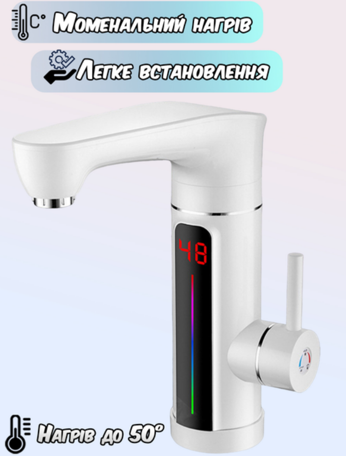 Кран водонагреватель Delimano 3000W-t50 ° Мини бойлер проточный с LED экраном Белый