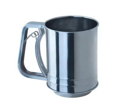 Кружка-сито чудесная ёмкость для просеивания муки. Кружка состоит из стального корпуса с двойным ситовым дном и ручки,