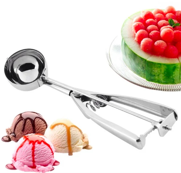 Усовершенствована пружинным механизмом, с помощью которого Вы в один миг сделаете красивые шарики из весового мороженого или десертные шарики для фруктовых салатов и легко разложите их по креманкам,а особое покрытие позволяет не прилипать лакомству к ложке.