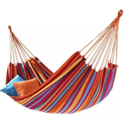 Прокачайте свой отдых на новый уровень! Цветной хлопковый подвесной гамак — приятная замена каремату или покрывалу. Колумб, который не только открыл Америку, но и завез в страны цивилизации много чего интересного, предоставил нам возможность наслаждаться таким видом спального места как гамак. Согласитесь – это очень приятный вариант в летнюю теплую погоду нежится на солнышке, плавно покачиваясь в гамаке. Что представляет собой предложенный тканевый гамак? Ткань натуральный хлопок, не парит, не выгорает, плотный и при стирке не теряет форму, крепление шнурки, вес которых выдерживает около ста двадцати килограммов.