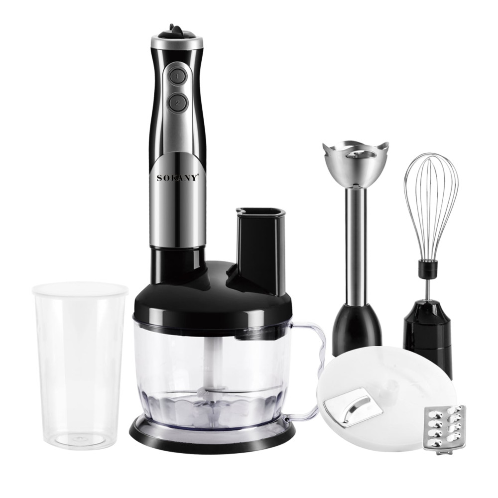 Многофункциональный ручной блендер Sokany SM-5011-8 — это универсальный кухонный прибор с мощностью 700 Вт, который имеет два уровня скорости для удобства использования.