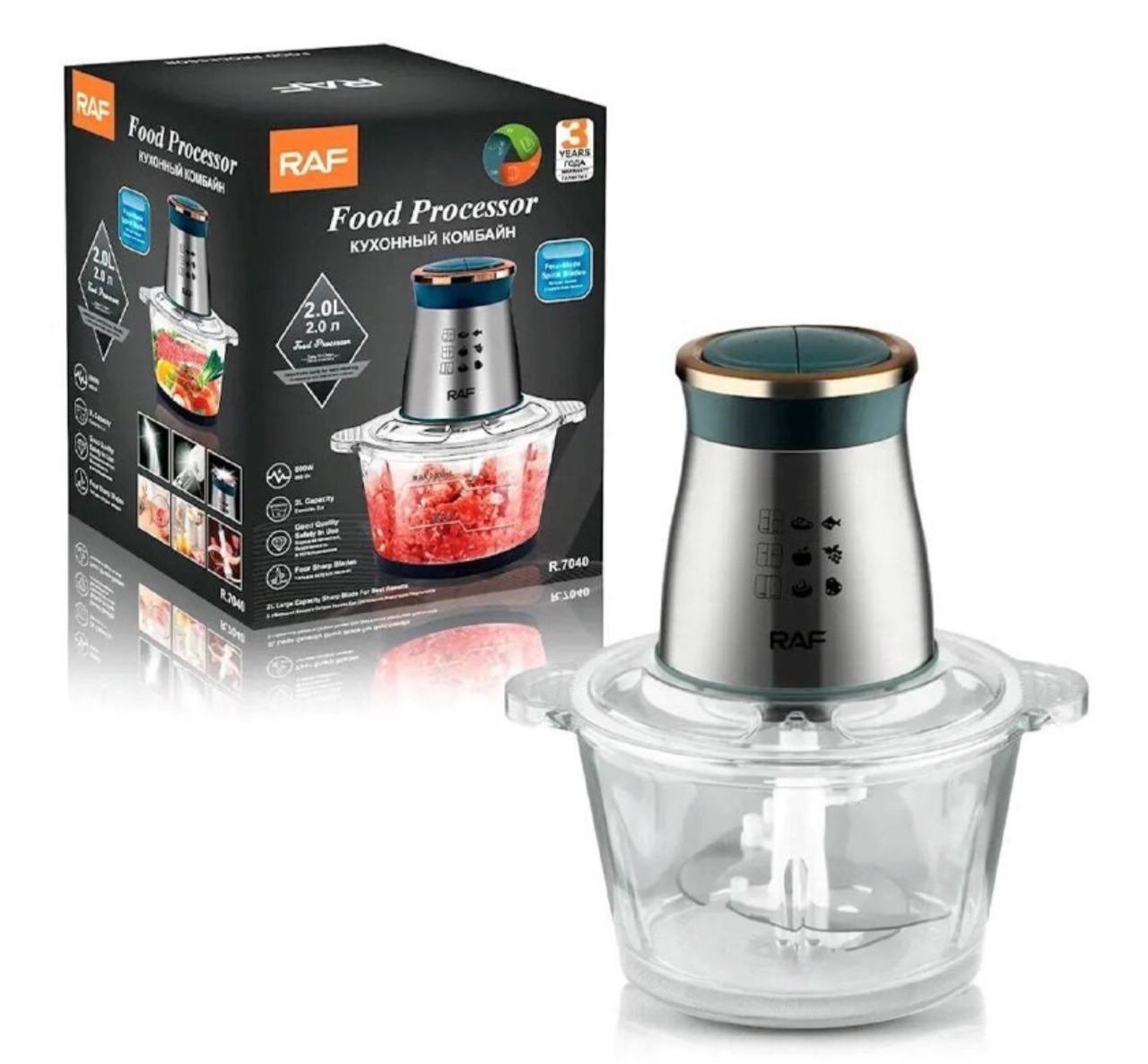 RAF 7040 — это портативный и многофункциональный измельчитель, блендер, мясорубка, мельница для быстрого измельчения как мягких продуктов, таких как: фрукты, перец, смешивания разных соусов, яиц, так и для твёрдых продуктов, таких как: мясо, овощи, зерна кукурузы, бобовые, корни растений, кофе, бобы, рис, с возможностью применения не только в домашних условиях, но и для ресторанов и баров.