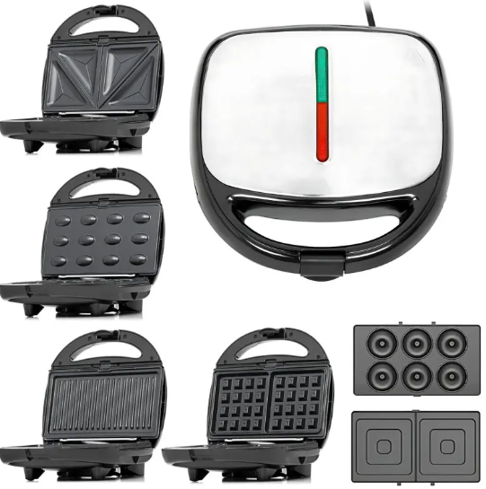 Мультимейкер 6в1 со съемными формами – это отличный способ сэкономить время и в считанные минуты приготовить горячие бутерброды с самыми разными начинками, пышные вафли, хлебцы, кексы, печенье «орешки», пирожки и пончики.