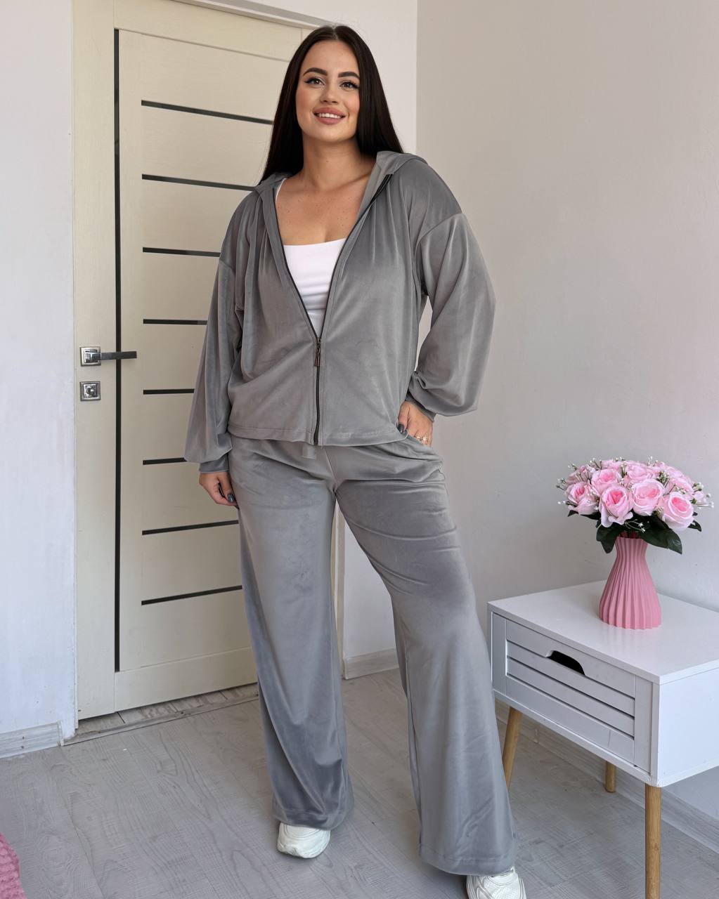 Велюровый костюм в стиле oversize – твой мастхев для ярких лугов. Комфорт, тренд и максимум свободы движений.