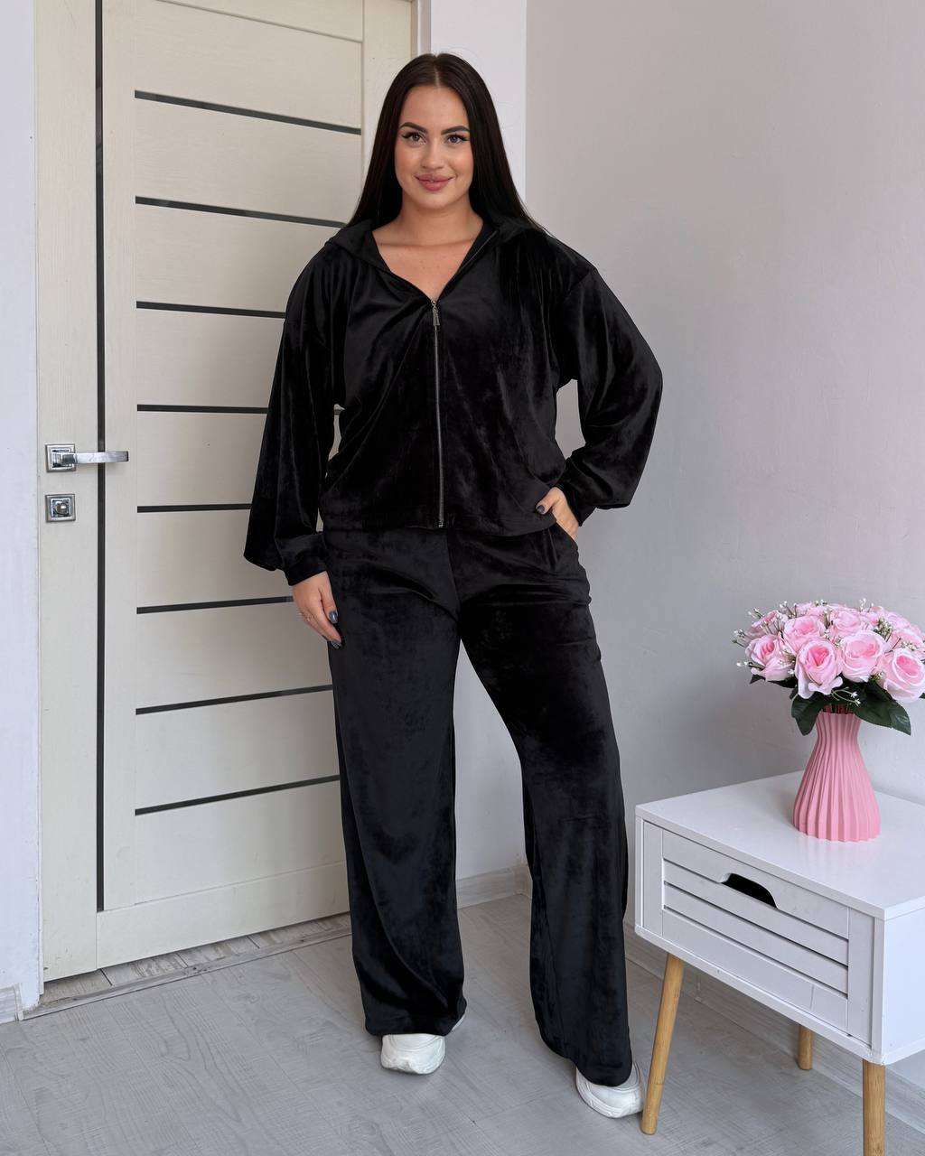 Велюровый костюм в стиле oversize – твой мастхев для ярких лугов. Комфорт, тренд и максимум свободы движений.
