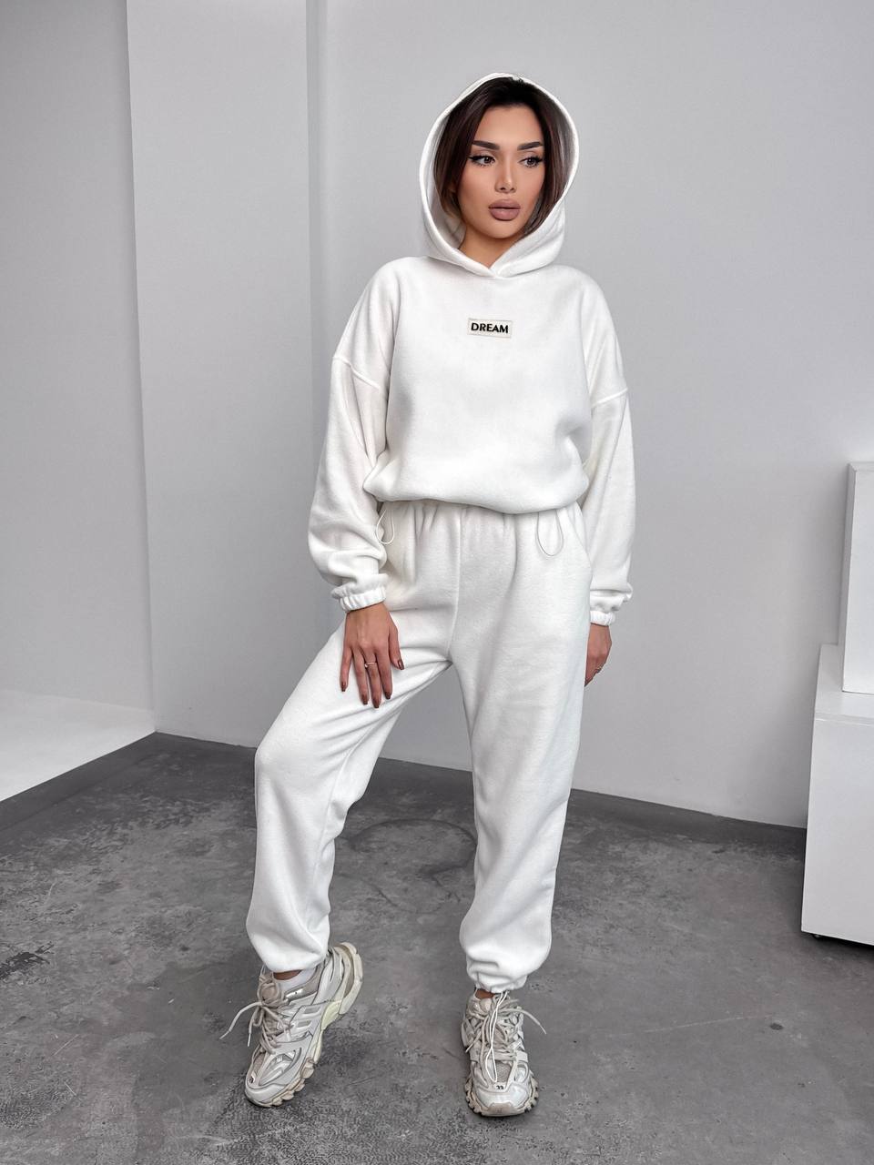 Мягкий костюм «DREAM» кофта с капюшоном+штаны с карманами (флис-полар) молочный