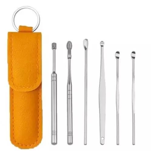 Набор из шести инструментов для чистки ушей из нержавеющей стали элегантном футляре.