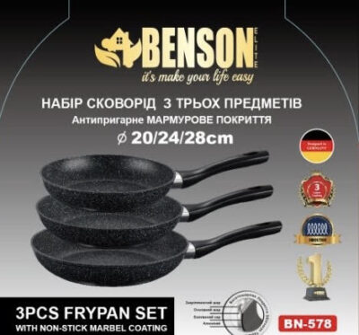 Набор сковородок Benson BN-578 20/24/28 см с мраморным покрытием, 3 шт, алюминий