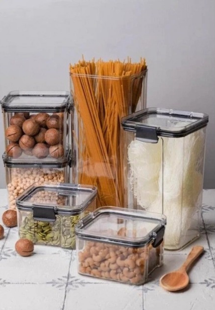 Контейнеры для хранения пищи содержат контейнеры разных размеров, что позволяет выбирать подходящий контейнер для различных продуктов, минимизируя пустое пространство. Прозрачные стенки контейнеров позволяют легко видеть, какие продукты находятся внутри, без необходимости открывать каждый контейнер.