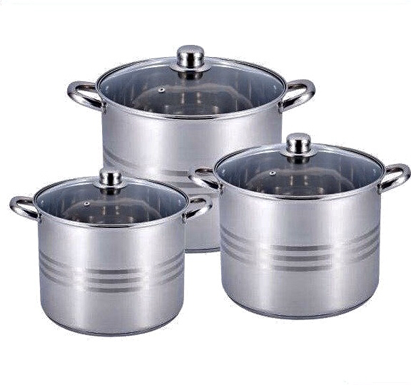 Кастрюли с многослойным дном (3 слоёв), обеспечивают превосходное распределение и сохранение тепла. Крышки выполнены из жаропрочного стекла с клапаном для отвода пара.