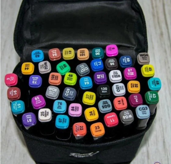 Для более удобного распознавания, каждый наконечник фломастера окрашен в свой цвет. Это позволит как взрослым, так и детям правильно рисовать свою картину, не запутываясь в множестве оттенков. Благодаря этому, вы перестанете теряется в таком разнообразии и сможете спокойно продолжать свою работу над шедевром. К тому же, каждый карандаш имеет свой код в виде цифры, которая нанесена сверху колпачка. Что касается чернил, то они хорошо впитываются в бумагу, так как сделаны на основе спирта. По этой причине, как раз и рекомендовано выбирать бумагу плотного вида. Отлично подойдёт сюда и картон. Это нужно для того, чтобы на обычном листе, средней плотности, к которым все привыкли, не было неприятного развода с обратной стороны листа.
