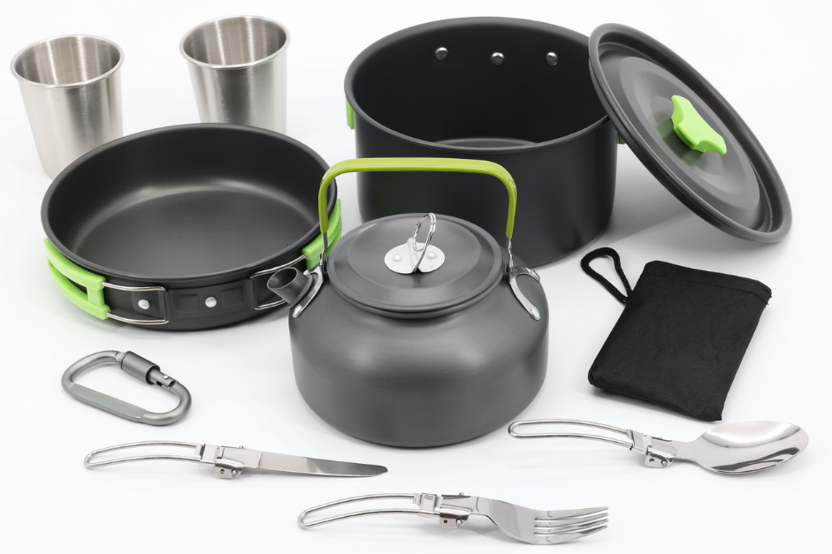 Набор туристической посуды из металла с антипригарным покрытием станет идеальным спутником для любого выездного происшествия.