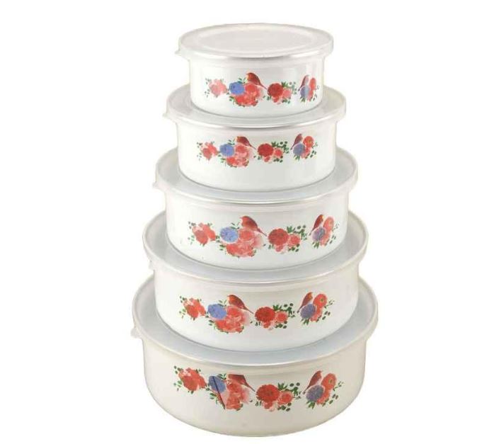 Набор эмалированных судочков с крышкой A-PLUS 5шт