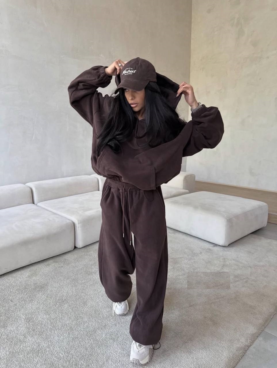 Оверсайз костюм флисовый: кофта на молнии+штаны шоколад