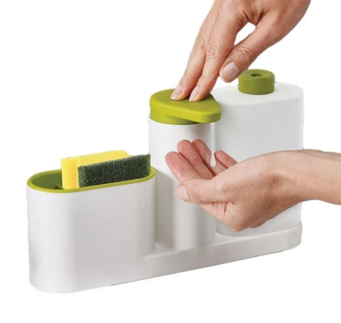 Органайзер для мойки с дозатором для мыла Sink Tidy Sey Plus 3 в 1 – очень компактный и удобный в использовании. Благодаря компактному дизайну данный органайзер может быть размещен даже на узкой стороне раковины. Теперь пространство за кухонной раковиной будет использоваться с максимальной эффективностью!