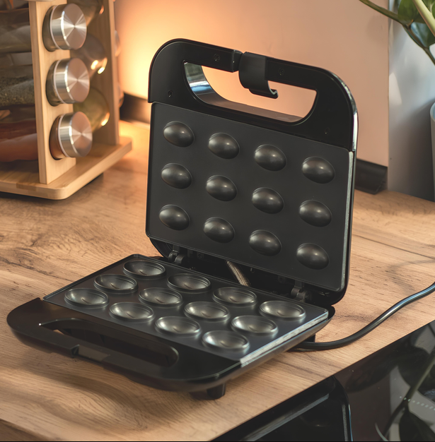 Электрическая орешница Sokany SK-08068 с антипригарным покрытием позволяет быстро и легко приготовить 12 орешков с начинкой.