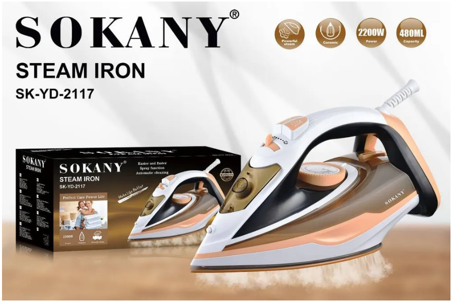 Паровой утюг Sokany SK-YD-2117 с простым, но чрезвычайно роскошным дизайном, высокой производительностью и простотой использования.