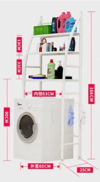 Интересное и практичное решение по организации пространства. Стойка органайзер на стиральную машину дает возможность задействовать свободное место над техникой. Особенно актуальна для небольшой ванной комнаты или кухни.