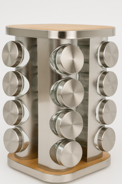 Компактный и функциональный, экономит место на кухне и позволяет хранить все приправы под рукой.