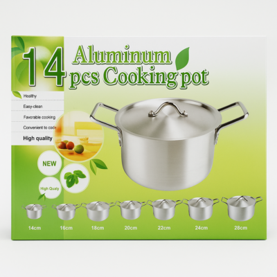 Практичный набор из 7 кастрюль с крышками, выполненных из прочного и легкого алюминия.