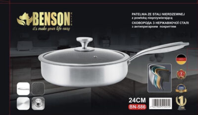 Сковорода BN-586 глубокая 24 см из нержавеющей стали профессиональная Антипригарное покрытие