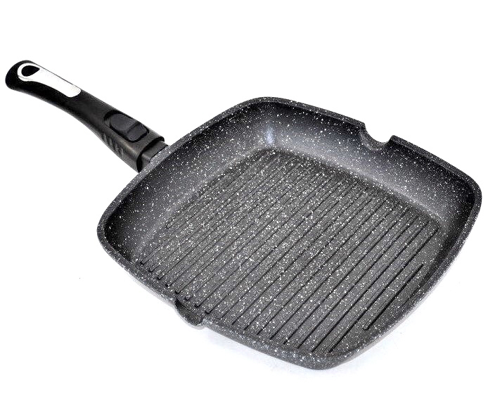 Простое приспособление объединяет в себе несколько функций и позволяет сделать барбекю, не выходя из дома. Особенность сковородки-гриль заключается в ребристом дне.