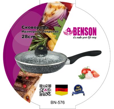 Износостойкое гранитное покрытие, которое позволяет пользоваться металлическими аксессуарами; бакелитовая ручка с мягким не скользящим покрытием — можно не использовать прихватки, антидеформационный индукционный диск.