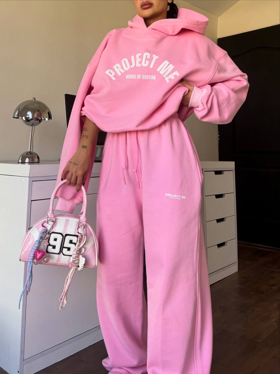 Спортивный костюм (Брюки палаццо-джоггера на кулиске+кофта с накатом+капюшоном) барби